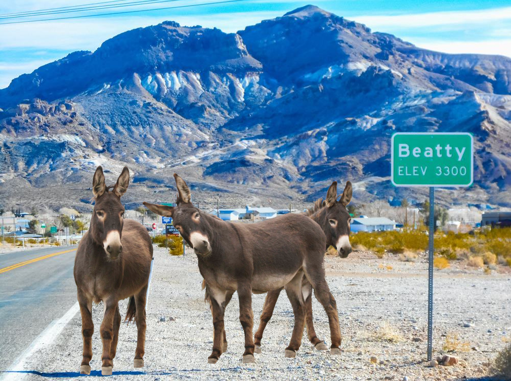 Today, the herds around Beatty are part of the wider Bullfrog-area burro population, managed on the surrounding public lands. But the burros don’t exactly read boundary signs — they still wander in and out of town, pause along Highway 95, and photobomb visitor snapshots on a regular basis. They’re both a reminder of the past and a very real part of daily life.