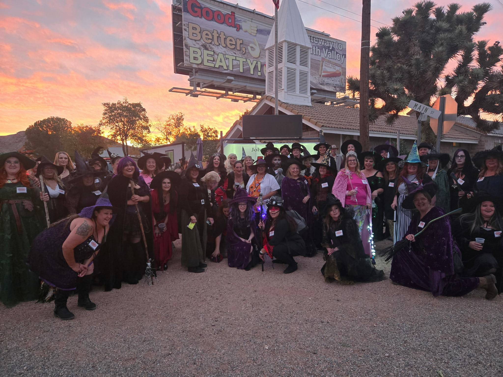 The Witch Walk in Beatty is our kind of Halloween—part bar crawl, part costume parade, part “who let all these cackling people loose on Main Street?” At sunset, witches and a few brave warlocks start gathering in their pointed hats, capes, and wild outfits, ready to turn our little desert town into a moving, laughing, broom-waving spectacle.