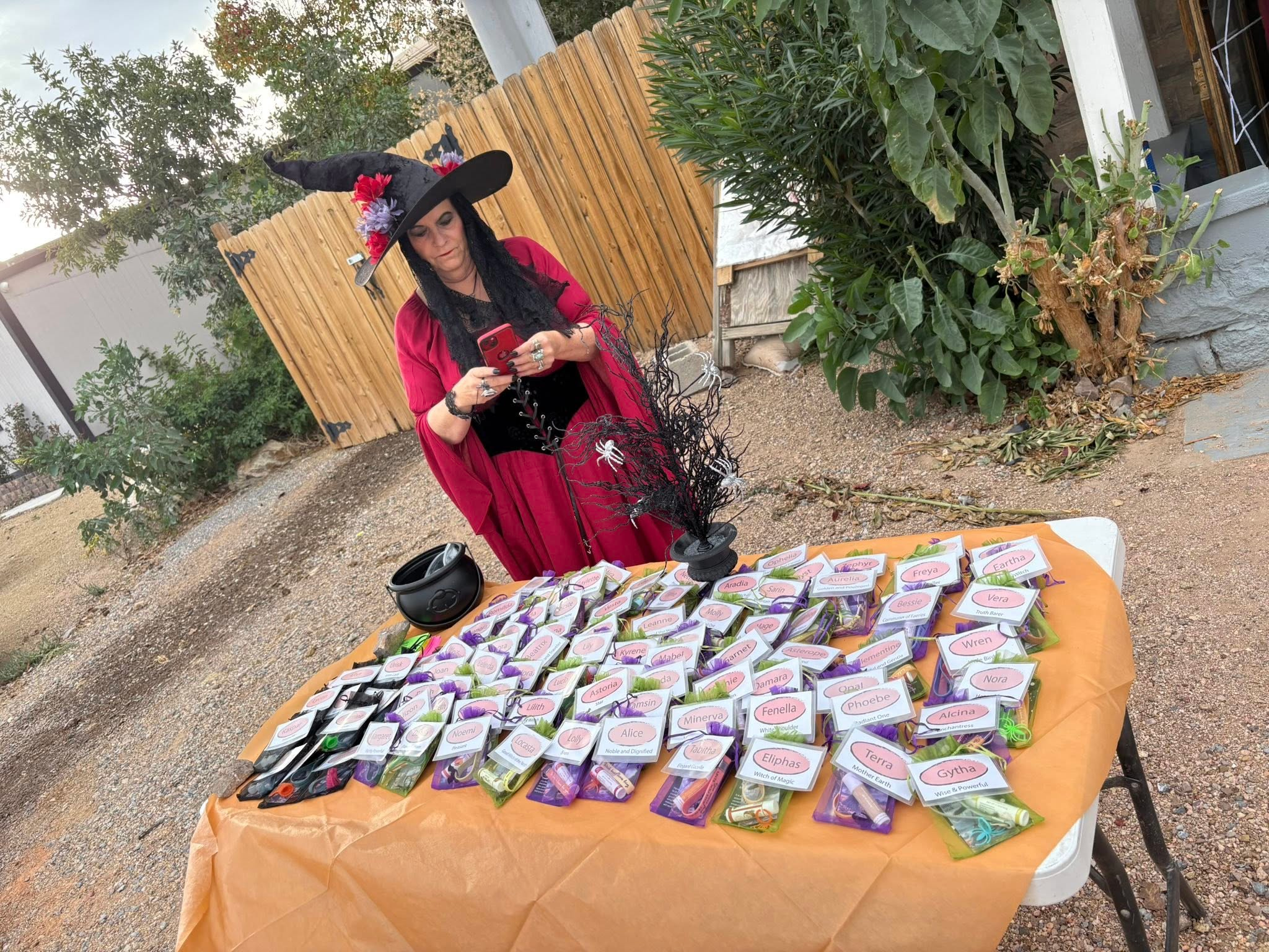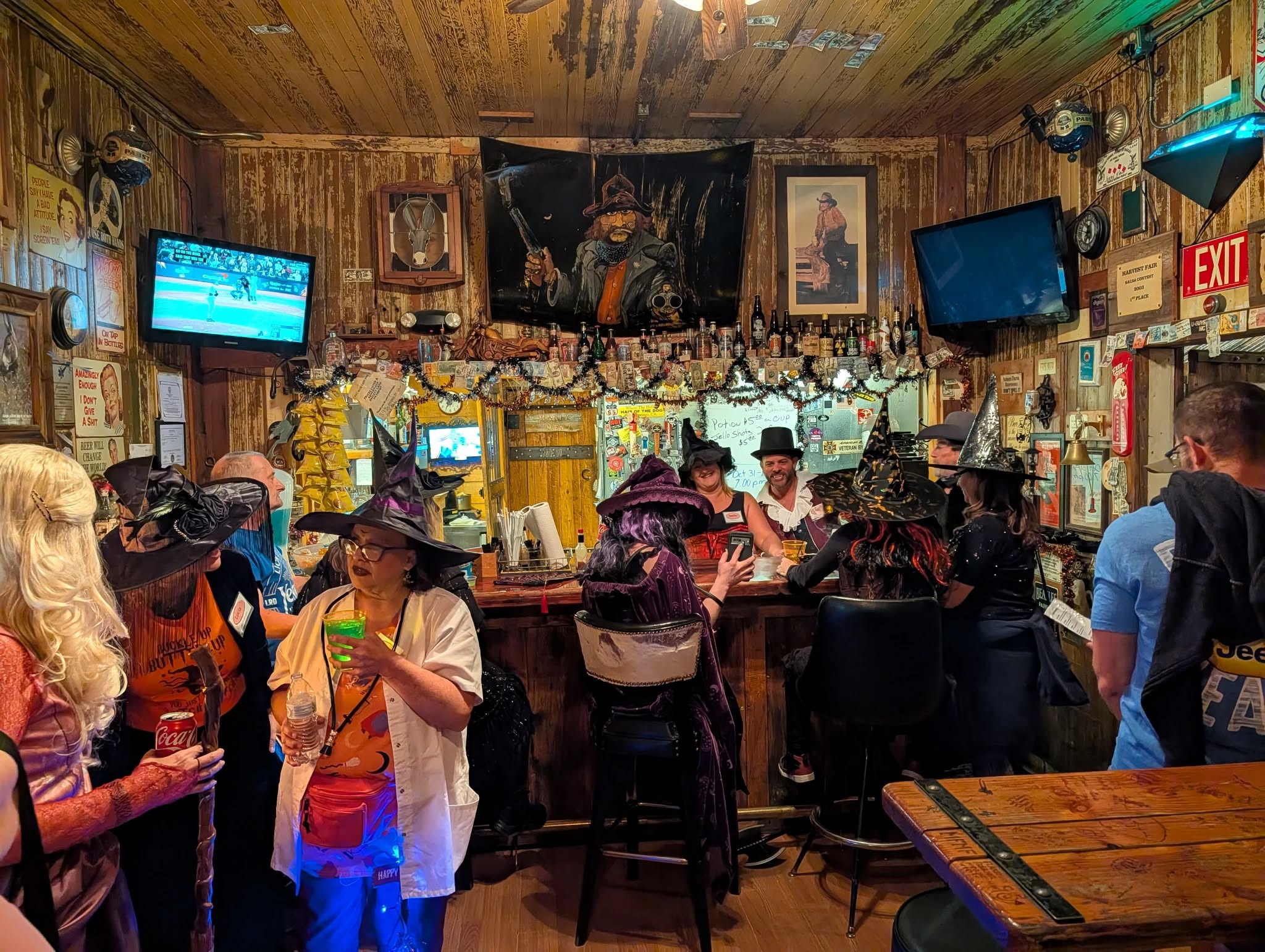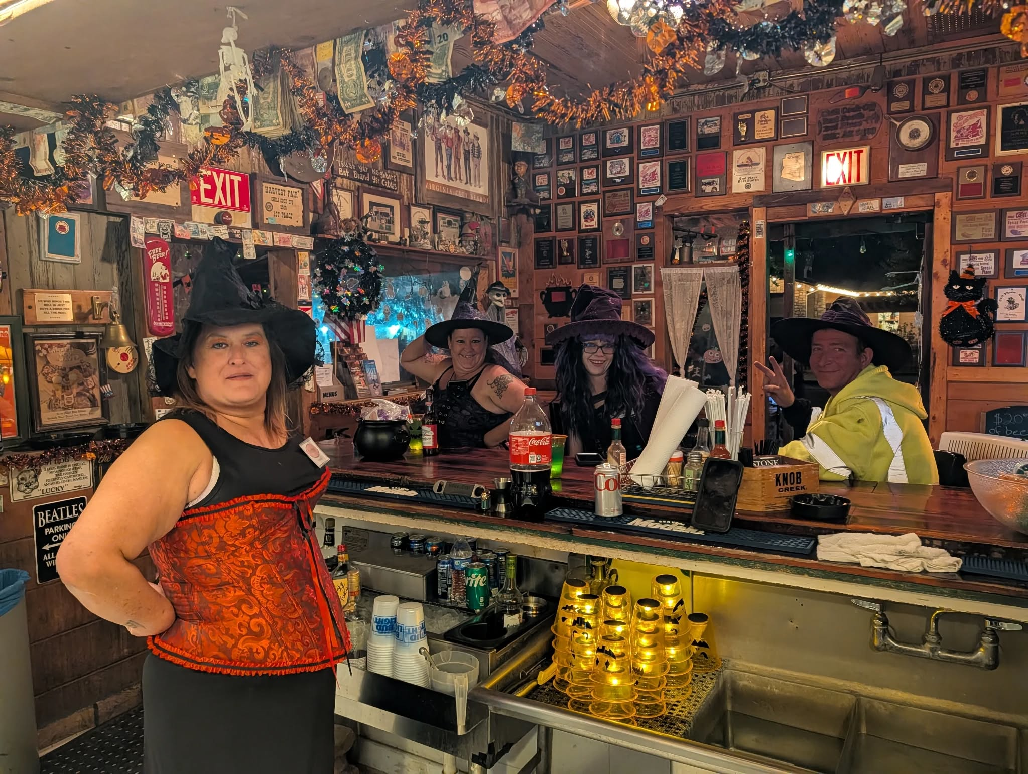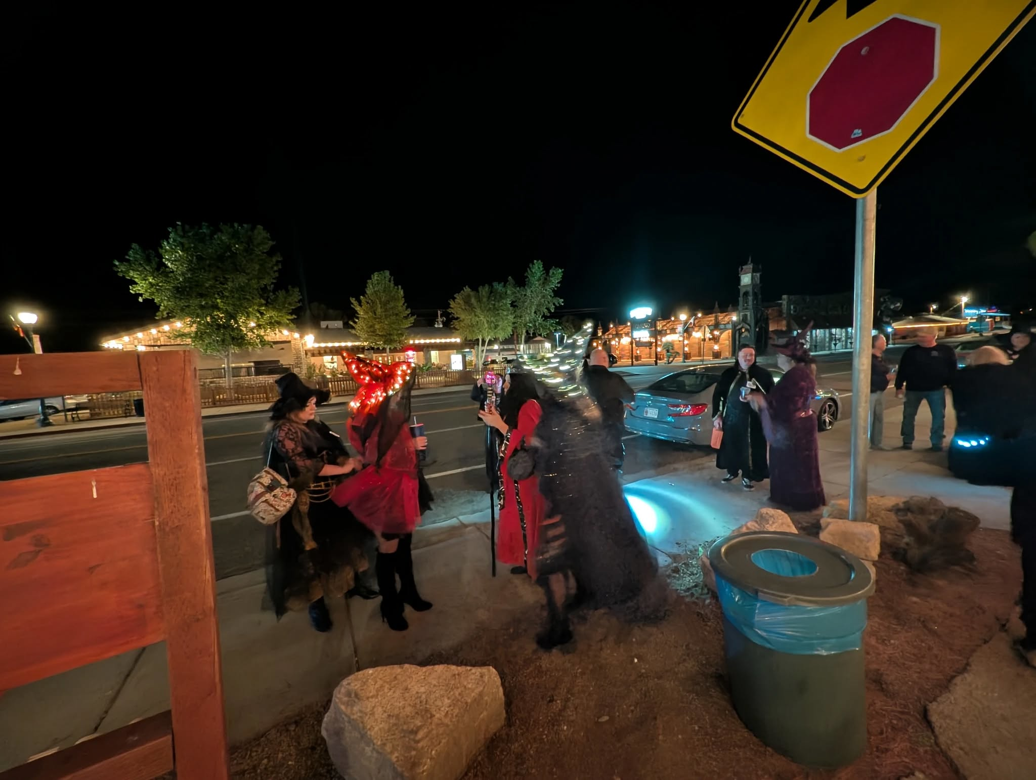 Everyone checks in at the starting spot, gets a witch or warlock name tag, and instantly stops answering to their government name for the rest of the night. From there, the group heads out through town—stopping at the local bars to snack, sip, and show off their costumes along the way.