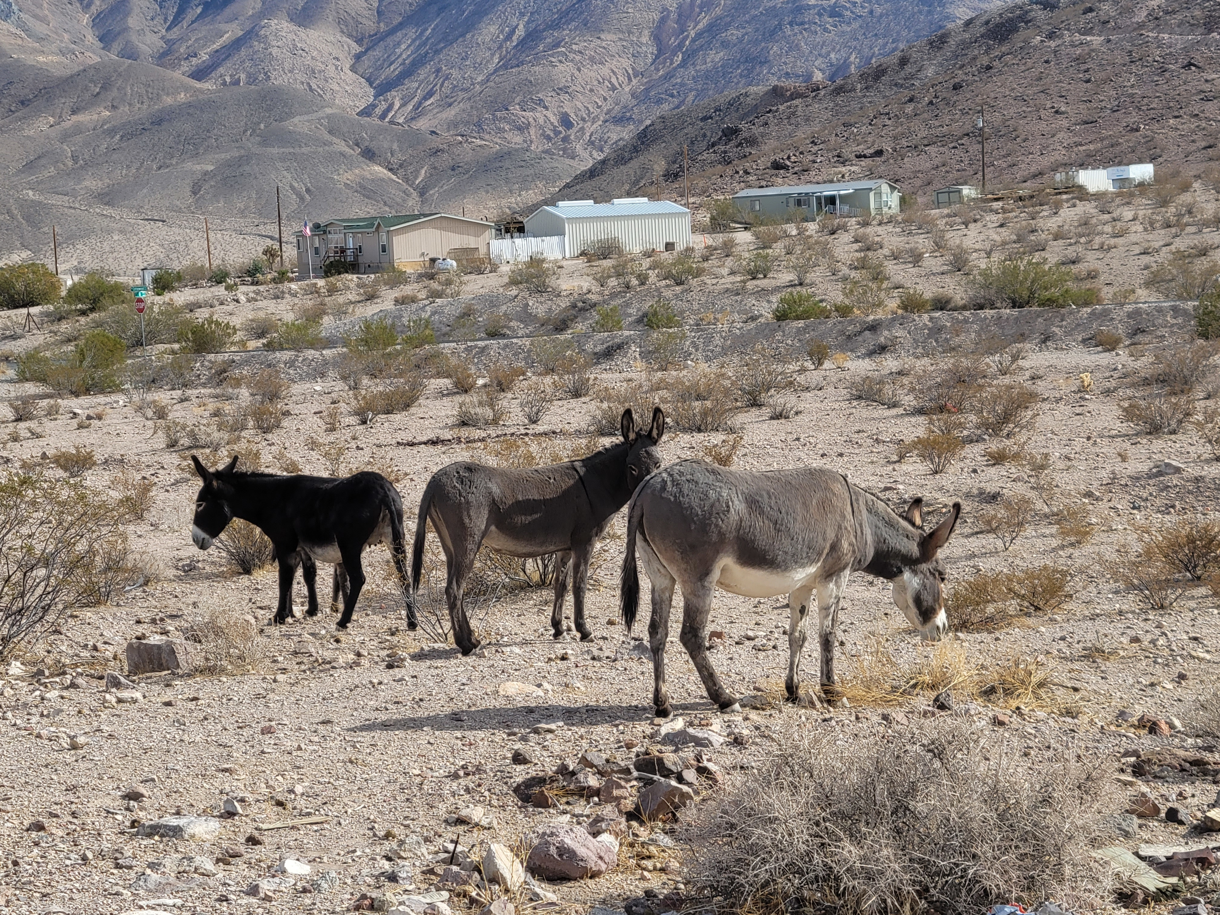Today, the herds around Beatty are part of the wider Bullfrog-area burro population, managed on the surrounding public lands. But the burros don’t exactly read boundary signs — they still wander in and out of town, pause along Highway 95, and photobomb visitor snapshots on a regular basis. They’re both a reminder of the past and a very real part of daily life.