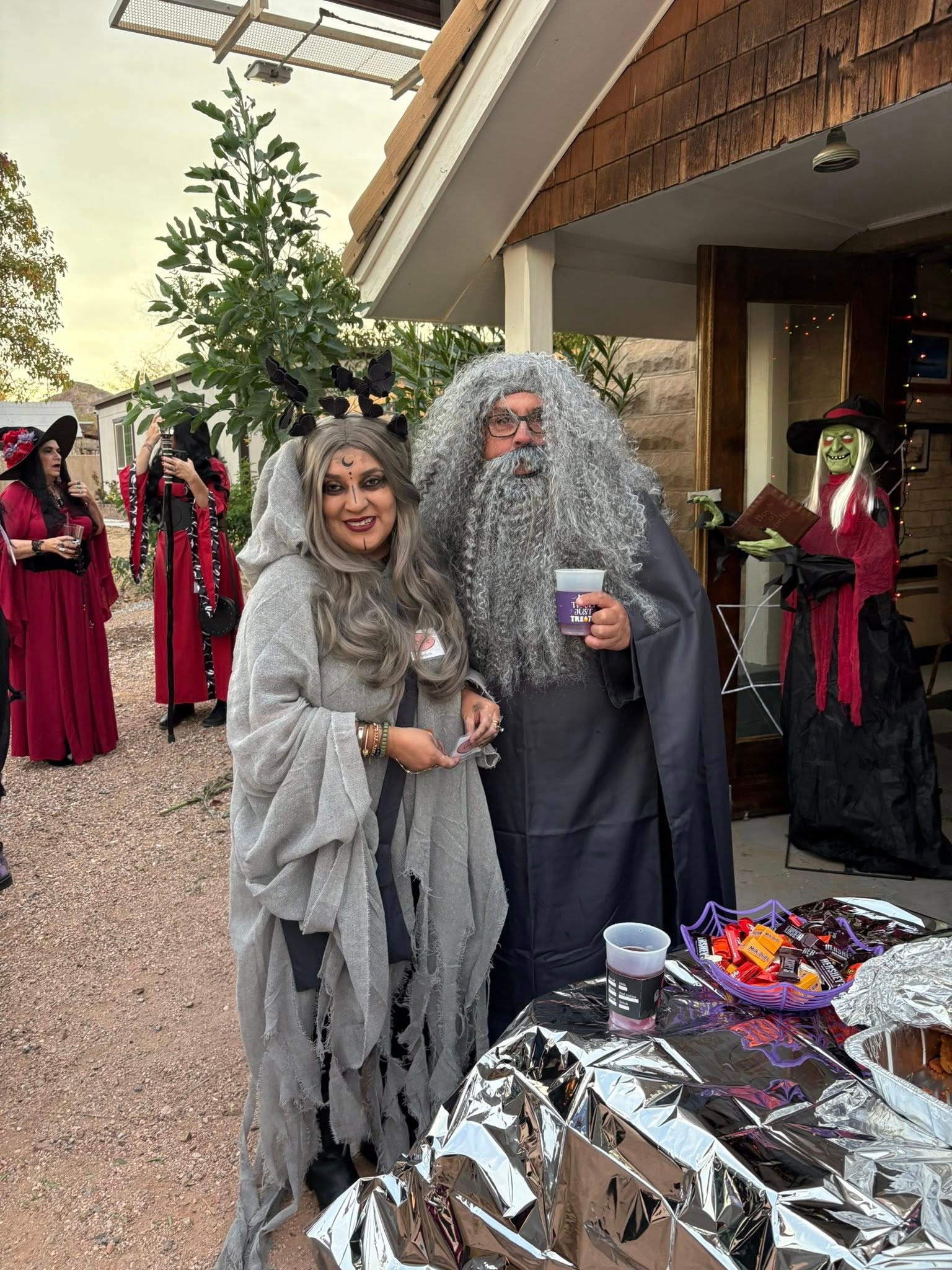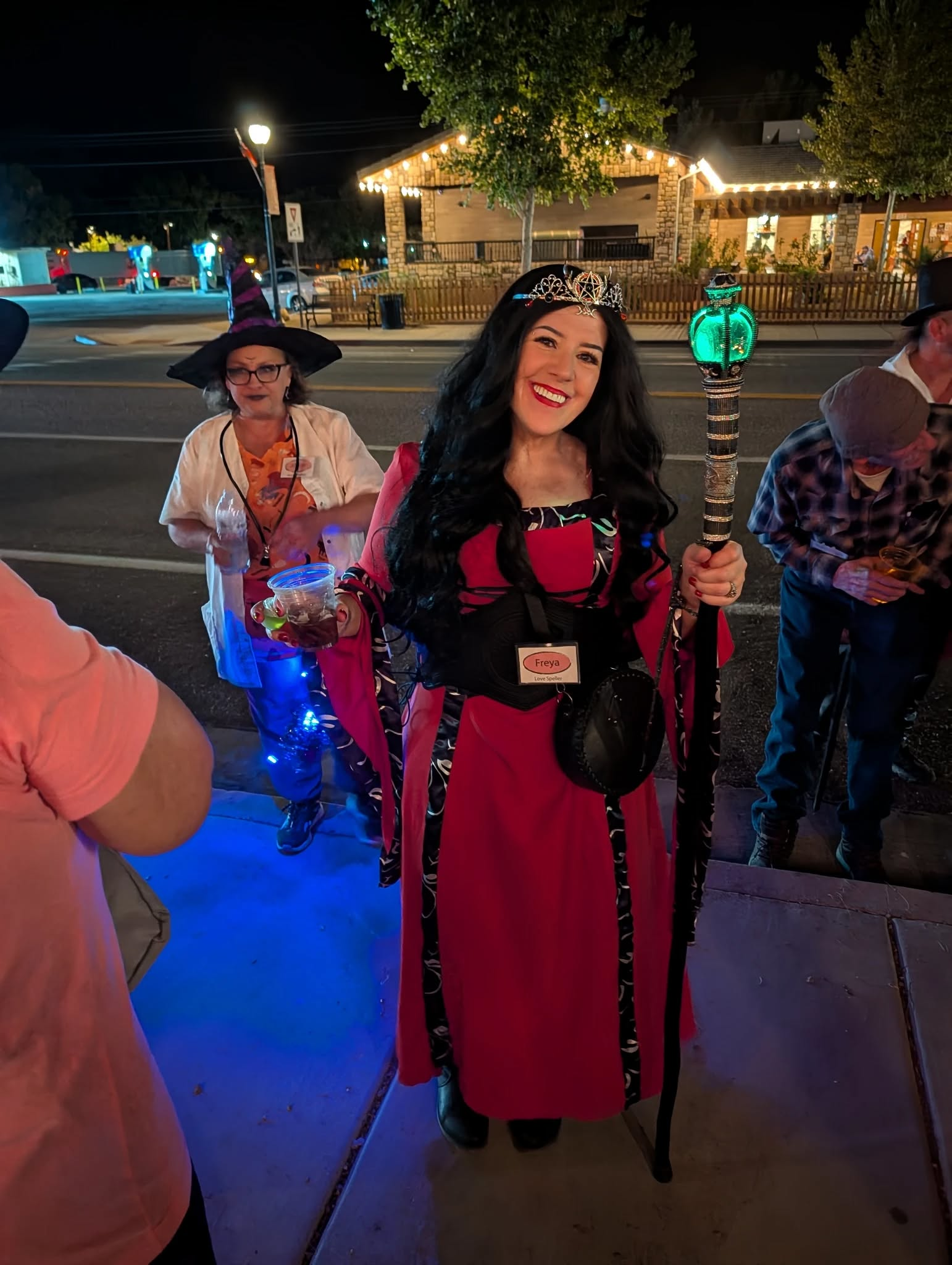 Everyone checks in at the starting spot, gets a witch or warlock name tag, and instantly stops answering to their government name for the rest of the night. From there, the group heads out through town—stopping at the local bars to snack, sip, and show off their costumes along the way.